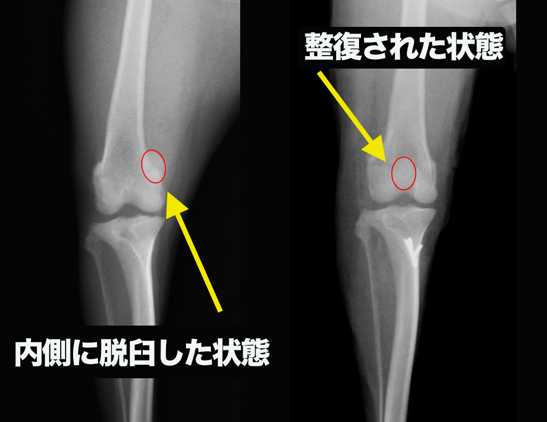 このことからも、膝蓋骨内方脱臼の治療では、脱臼そのものだけでなく、各症例に存在する骨格異常を正確に評価し、必要な異常を適切に是正することが極めて重要です。
